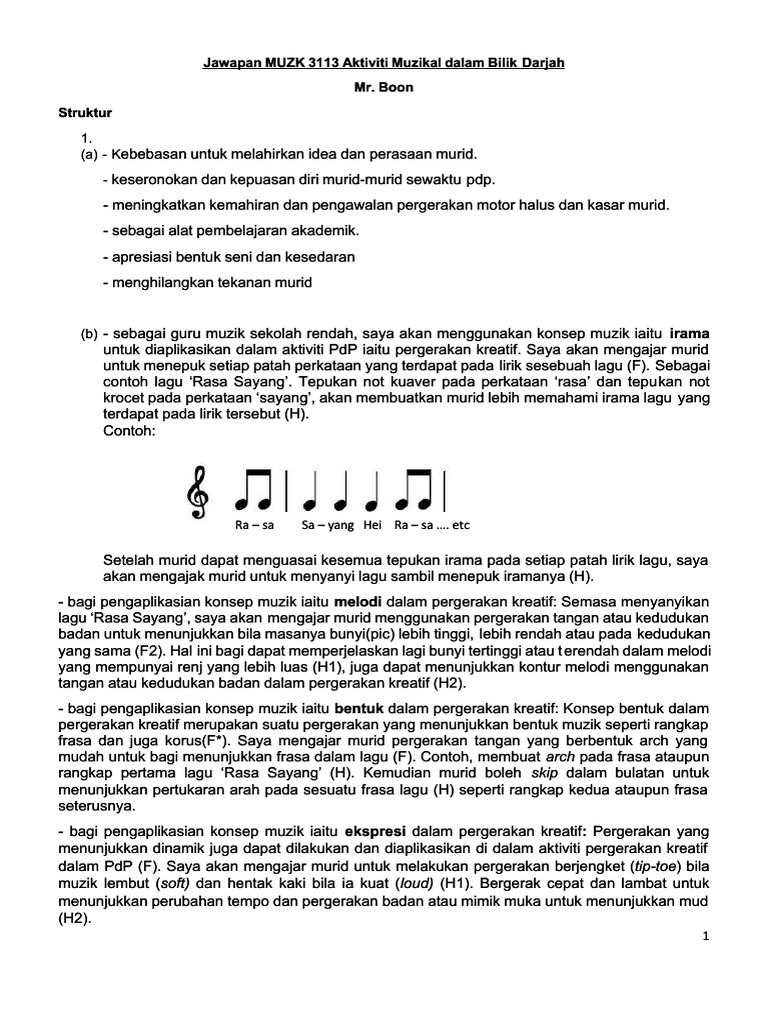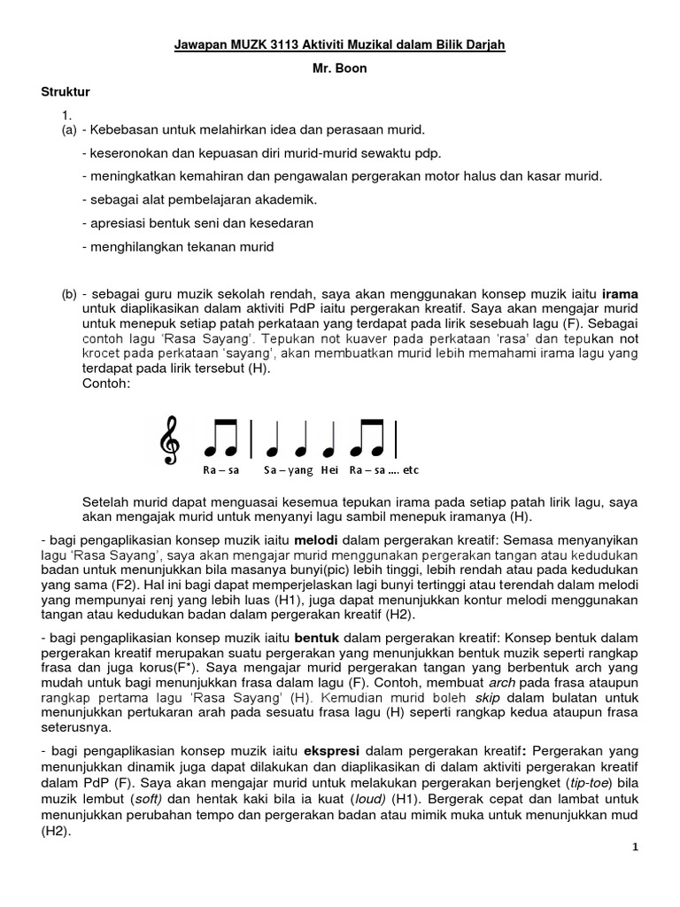 Jawapan Muzk 3113 Aktiviti Muzikal Dalam Bilik Darjah Pdf